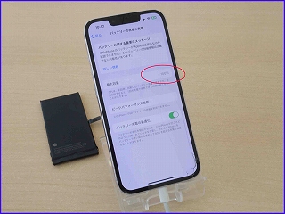 注意点(警告について):iPhone 14の場合、互換バッテリーに交換すると、設定画面に「不明な部品」等、メッセージが表示されてしまいます。