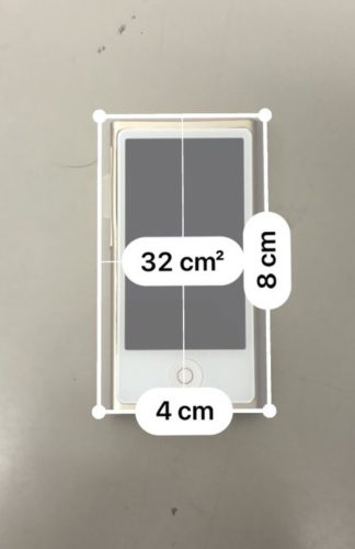 左の写真はiPhoneの「計測」アプリを使った写真、右の写真は1マス1センチ四方の方眼の上に置いたものです。