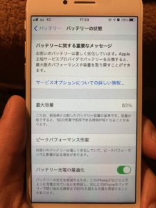 80%を切りますと【バッテリーの状態】という項目に【バッテリーの状態 サービス】と出てきます。