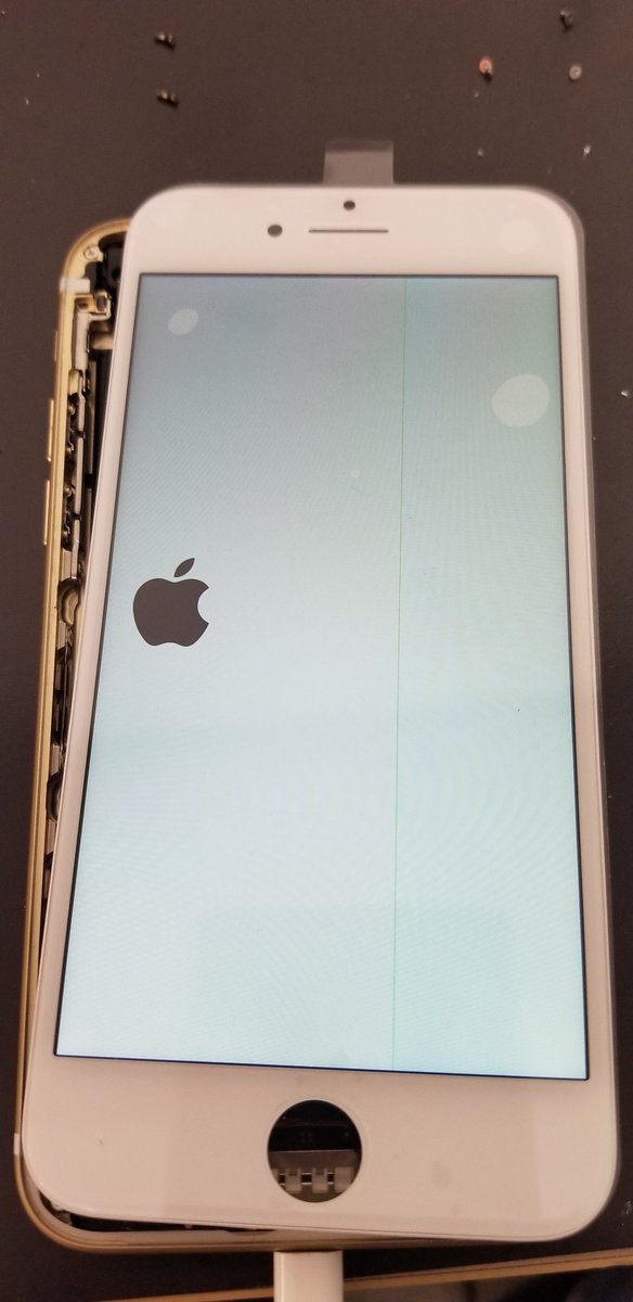 - おはようございます!クイック大和中央通り店です。先日とても珍しい症状のiPhoneに出会いました。「どうしても液晶の表示がズレてしまう」のです...百聞は一見に如かず!コレです。本来ならば画面中央にあるはずのリンゴマークが端に...起動ができてホーム画面に入ってもズレたままです。液晶不良だと思い新しい液晶を取り付けたのが上の写真です。。新品の液晶でも直らない...恐らく基盤側に損傷や不具合があるのでしょう。お客様とご相談した結果、今回修理は諦める事になりました。え!?じゃあこのまま??いいえ、そんな事には致しません!幸いこの端末からデータのバックアップを抜き取ることはできました。なので当店と提携している「駅前の携帯ショップ」で機種変更の手続きをし、新しい端末に今のデータを「そのまま移す」という方法を取らせて頂きました。しかも提携のショップでお手続きして頂ければ...このデータ移行のご料金もサービスできるのです♪どんなケースでも最善のご提案をできるように準備しております!お客様も「その手があったか!」といった様子でご快諾。クイック大和中央通り店は諦めません!!お客様に最も安心して頂ける道を一緒に探していきます。どんなケースもお気軽にご相談ください。スタッフ一同お待ちしております☆☆☆☆☆☆☆☆☆☆☆☆☆☆☆☆☆☆☆☆☆☆☆☆☆クイック大和中央通り店⇐リンクありお問い合わせ:0120-772-919年中無休 / 電話受付 10:00〜21:00 / 窓口営業 10:00~20:00〒242-0017